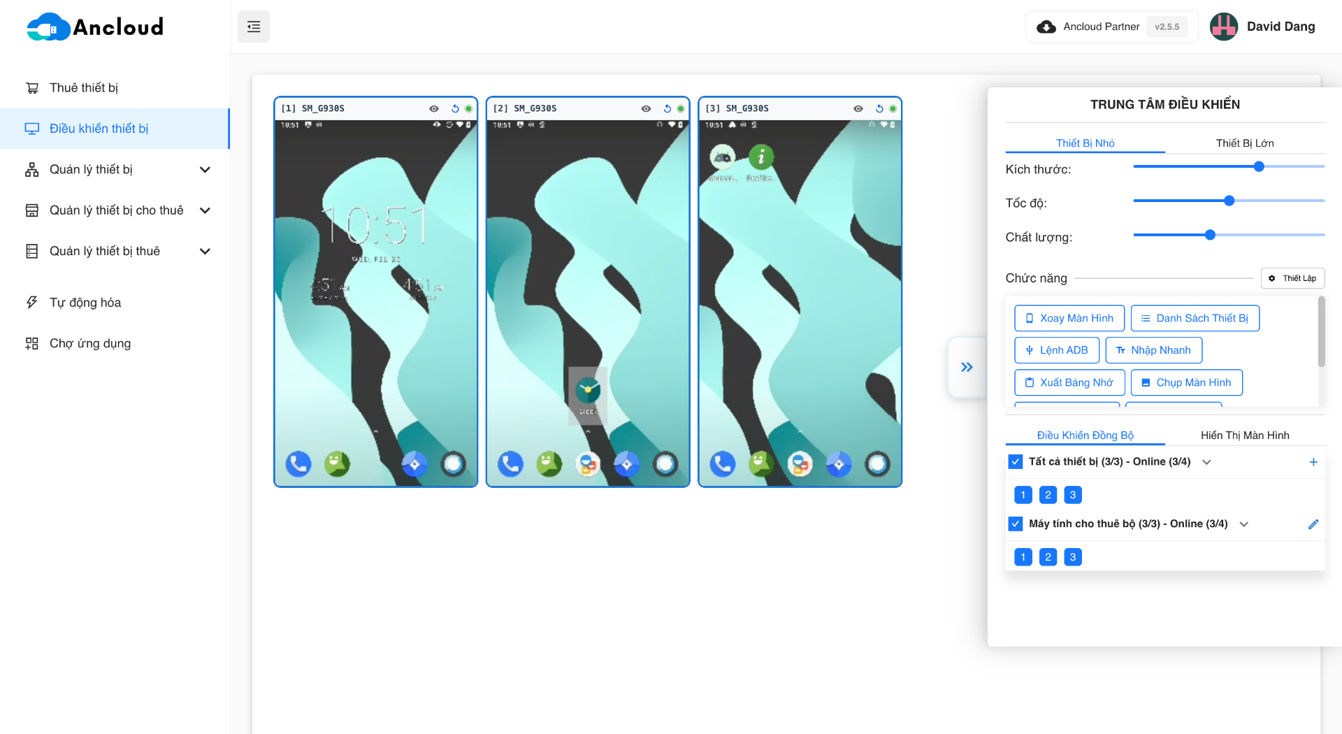 Ancloud là nền tảng quản lý và điều khiển đồng bộ điện thoại từ xa. Với Ancloud, bạn có thể quản lý và điều khiển điện thoại từ nhiều khu vực khác nhau với độ ổn định cao.